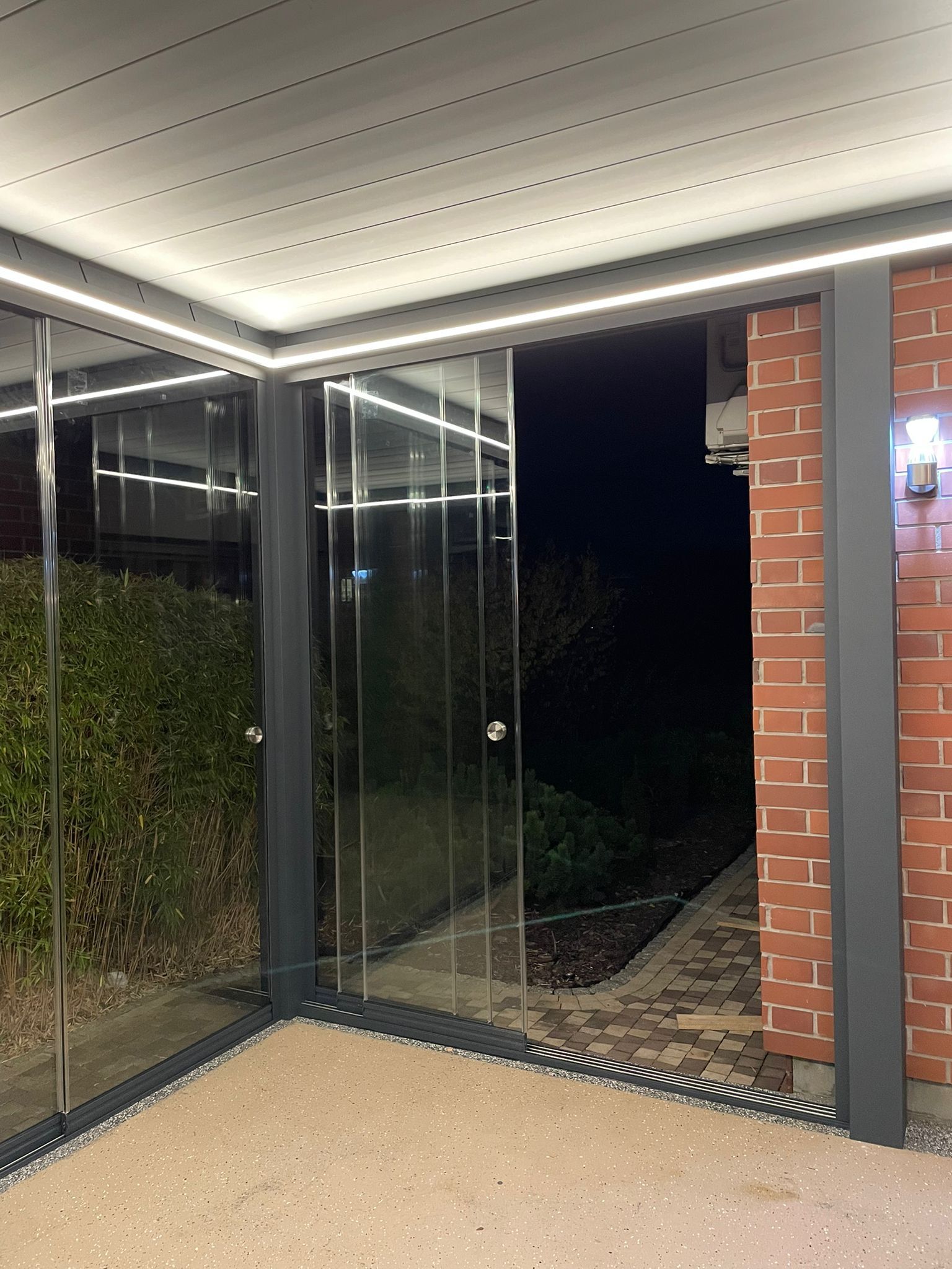 WIN GLASS to system przesuwnych paneli ze szkła hartowanego (10 mm) przeznaczony do zabudowy tarasów i pergoli. Połączenie solidnych, smukłych profili z hartowanym szkłem zapewnia ochronę przed wiatrem, opadami i czynnikami zewnętrznymi, jednocześnie zachowując przejrzystość i estetykę.